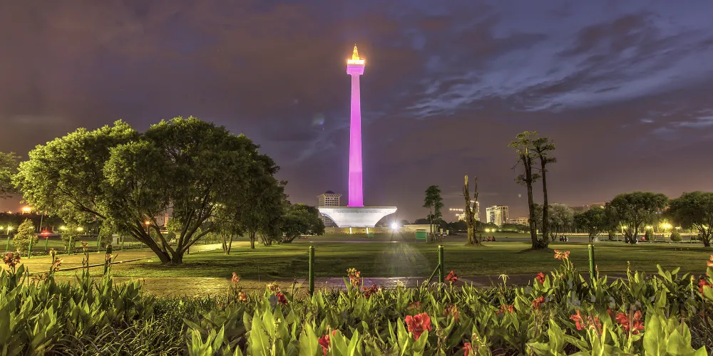 獨立廣場位於雅加達中區,又稱莫迪卡廣場。以印尼人民英雄紀念碑為中心,廣場北邊是總統府,西街上有國防部大院和中央博物館,東邊是Gambir火車站。廣場東南角上有一組根據《摩訶婆羅多》史詩中故事情節塑造的群馬拉車雕塑,十分壯觀。在紀念碑西側的公園裡還有一座音樂噴泉。