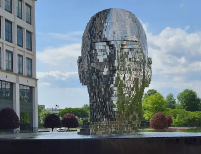 金屬製成的雕像,站在不同的角度看到雕塑面部都在移動,很是壯觀。