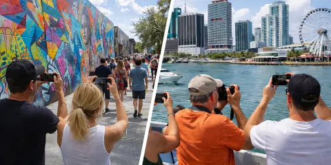 在這片色彩豐富的藝術區內,彙集了眾多度假酒店、餐廳、咖啡館、酒吧和商店。夜幕降臨後,霓虹燈的映照下景緻更加迷人,非常適合攝影愛好者前來拍照。每年一月的舉辦裝飾藝術周更是熱鬧非凡。