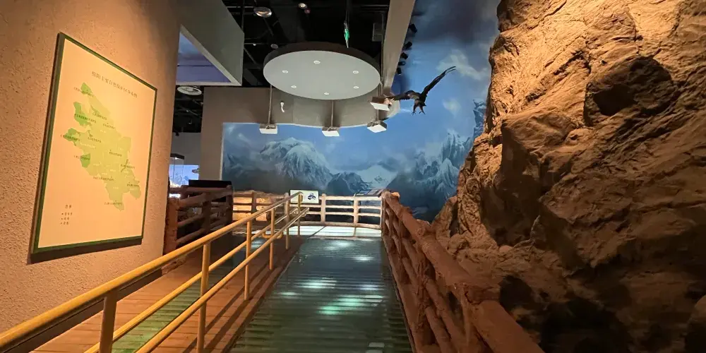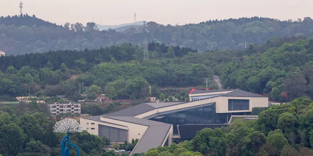 綿陽博物館綿陽國際會展中心(綿陽博物館)在2003年6月完工,坐落在風景優美的蜀漢歷史文化中心富樂山腳下,佔地百餘畝,建築面積近二萬平米,地上三層,地下一層,其中展廳面積為11000平米,整個建築高42米,長142米,寬54米,宏偉大氣形似一座古代石拱橋,寓意着古今和中外連接交匯之橋。如今會展中心已成為四川省第二大城市綿陽市——全國衞生城、全國園林城、全國環保城、中國西部硅谷——的標誌性建築。