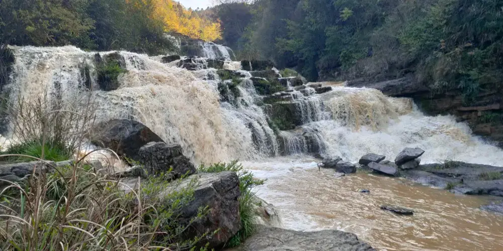米底河是烏江水系上的一條支流,途徑高山深谷,蜿蜒曲折。米底河景區珍稀植被豐富,包含火棘、刺梨、野花椒、白櫟、槲櫟、茅慄等。景區內還有米底河瀑布、神泉、三層水、聽水台、錦盒崖等有名景點。