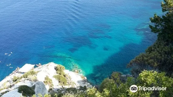 藍洞不是單獨一個洞穴,而是沿海岸線一排天然形成的溶洞,是島上知名的景點之一。這些藍色洞穴位於扎金索斯島北部東岸,洞內的海水十分透亮,像水晶一樣發著幽幽的光芒,令人心醉。晶瑩剔透的海水映入眼簾,猶如藍色墨水被打翻一般,非常驚奇。扎金索斯島上有很多遊覽藍洞的玻璃船,乘坐遊船來此,透過玻璃船底部可以看到清楚地海底的熒光藍色細沙和浮游生物。天氣炎熱的夏天,還可以下海暢遊一番,整個身體都會被折射為熒光藍,着實令人驚歎。