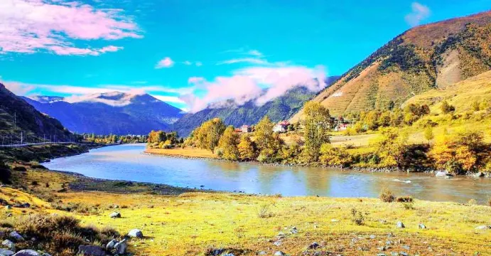 十里長廊位於四川省甘孜州康定縣新都橋鎮。新都橋海拔約為3300米,沒有特別突出的標誌性景觀,沿線10多公里被人們稱為“攝影家走廊”。川藏線南北的分叉路口,北邊通往甘孜、南邊接理塘,一個個典型的藏族村散佈在公路兩旁,氂牛和羊羣點綴其間,舒適而又生動。