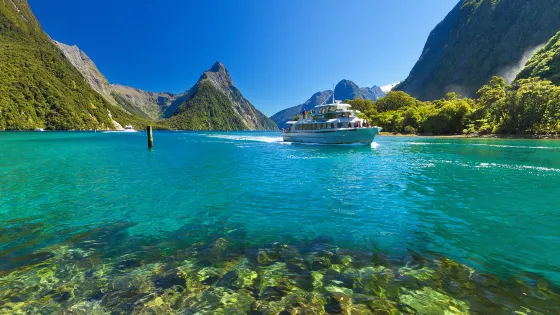 米爾福德峽灣是世界著名的自然奇觀,是位於紐西蘭南島西南峽灣國家公園內的冰河地形。陡峭、鋸齒狀的懸崖從平靜、黑暗的水域中拔地而起,茂密的雨林生長在岩壁上,瀑布直入數百公尺深的大海。 1.世界上最美麗的道路 從皇后鎮到峽灣的道路被譽為世界上最美麗的道路之一。沿途經過鏡湖、步道、荷馬隧道等多個景點。許多由雪融化形成的小瀑布。 2、搭乘遊船欣賞峽灣風光 米爾福德峽灣的水上遊覽是欣賞峽灣美景的主要方式。觀光船緩緩駛離米爾福德峽灣碼頭後,可以看到高達100公尺以上的寶文瀑布。風大的時候,瀑布的水會濺到碼頭上。瀑布的對面有一個小礫石堆,稱為小墓地,是住在附近的捕鯨者和海豹捕獵者的安息之地。繼續向前行駛,左邊是高聳入雲的馬修峰,直接矗立在海面上。另一邊是獅子山和象山,名字都很形象。不遠處就是通角,這是峽灣的相對航道。風大時,穿山越嶺,風勢驚人。當船來到仙女瀑布時,船頭會在瀑布正下方交匯,這個瀑布的水是可以飲用的。從船上看過塔斯曼海後,船就會慢慢掉頭重新進入峽灣,一次峽灣巡遊就基本完成了。飛機之旅和海上皮划艇之旅是體驗山脈、瀑布和懸崖的另外兩種好方法。還有一個有水下觀景窗的觀光船,可以讓遊客從水底觀察珊瑚礁和其他海洋景觀。峽灣中還可以看到海豚、峽灣企鵝、海豹等水生生物,尤其是海豹岬角,經常聚集大量幼年海豹。 3.《魔戒》的拍攝地之一 作為《魔戒》的拍攝地之一,吸引了許多粉絲來到這裡。