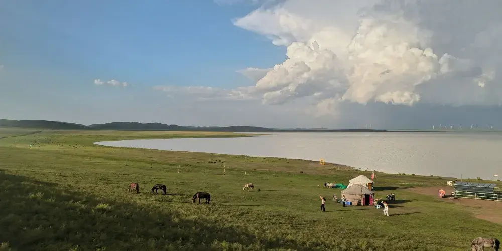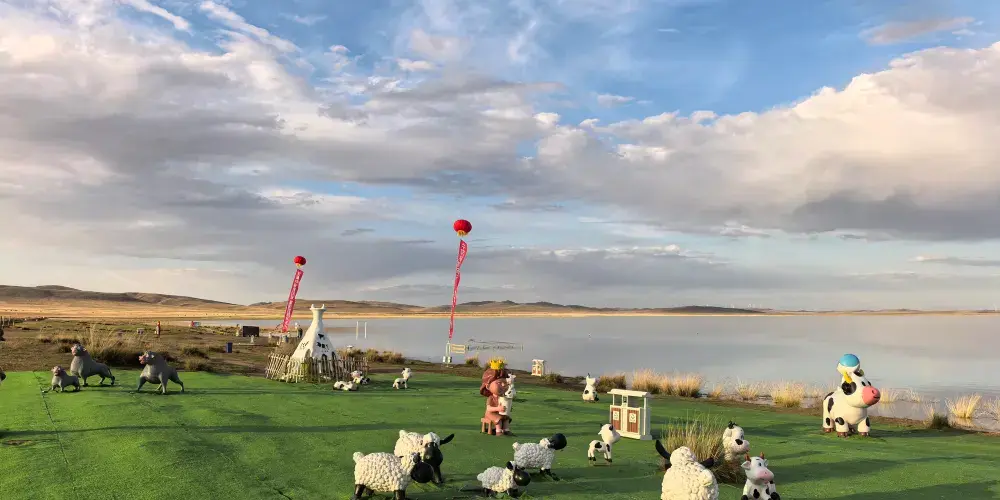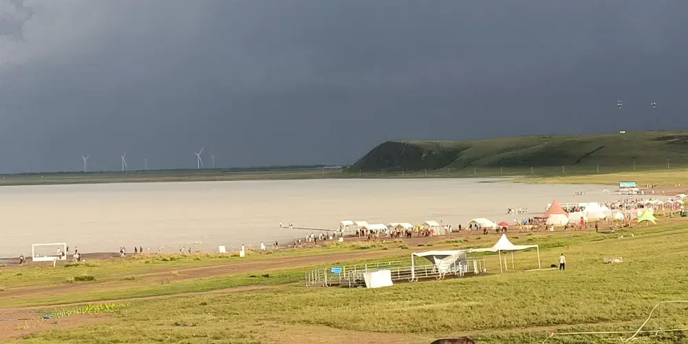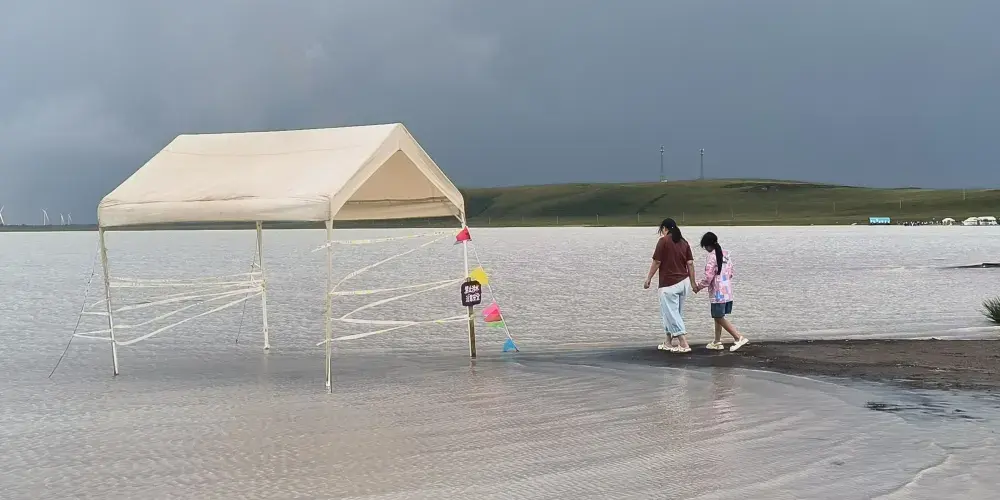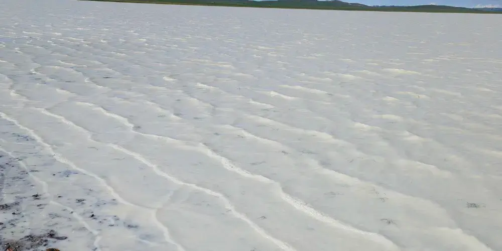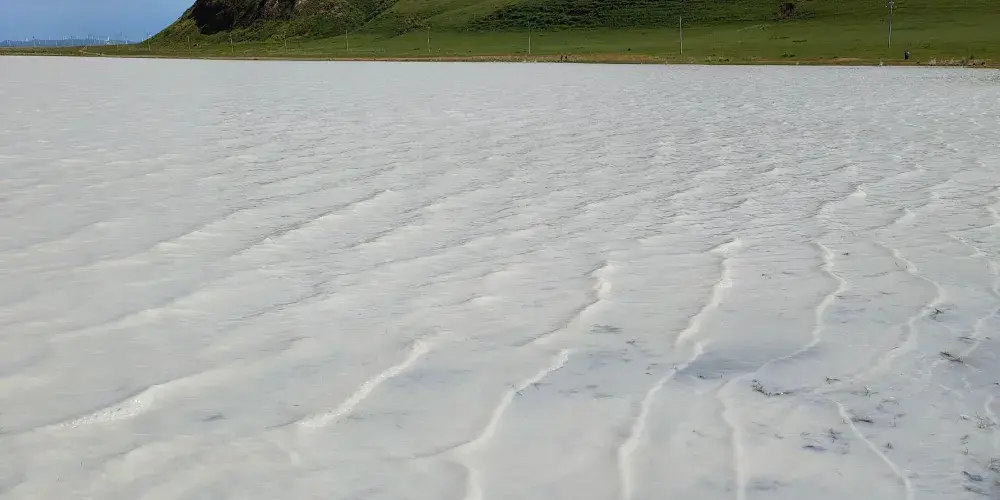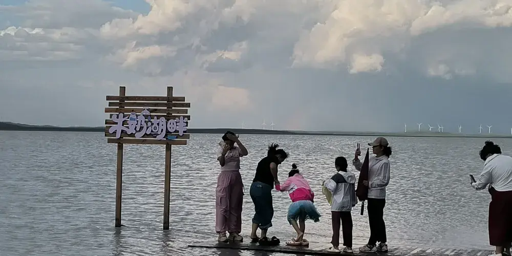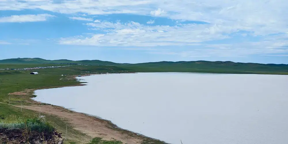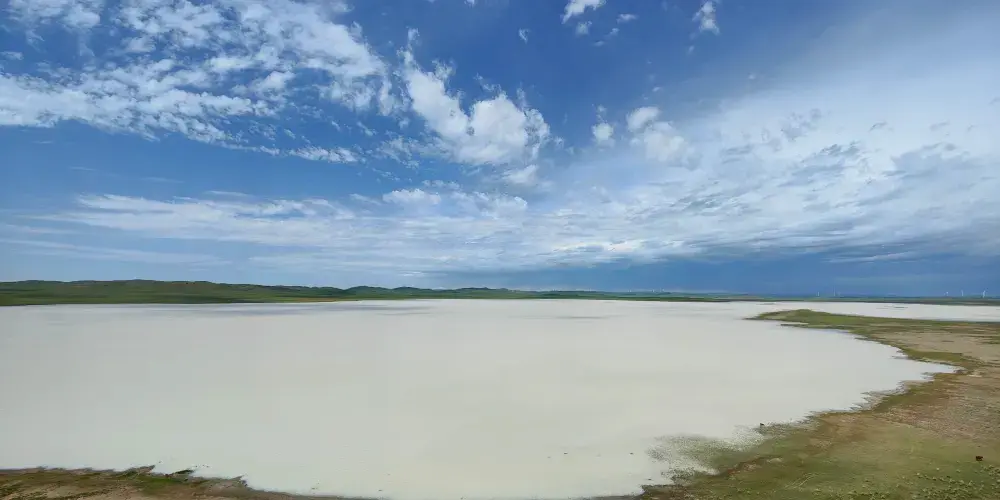 在錫林郭勒大草原的腹地,太僕寺旗貢寶拉格蘇木五旗敖包嘎查附近,有一片宛如夢幻仙境的地方-牛奶湖畔。牛奶湖的湖水呈現出罕見的奶白色,如同煮沸的鮮奶般翻滾著濃鬱的乳白。湖泊鑲嵌在廣袤無垠的碧綠草原中央,與藍天、綠野構成了一幅超現實的畫卷。湖畔綠草如茵,黃色、綠色的草叢中偶爾點綴著幾叢紫色馬蘭花,牛羊在湖邊悠然自得地吃草、飲水,為整個畫面增添了幾分生機與活力。拜訪湖畔的牧民人家,熱情的主人會端上滾燙的鹹奶茶和奶食。坐在蒙古包前,眼前是翻滾的 “奶湖”,口中是醇厚的奶香,耳畔是悠揚的馬頭琴聲,讓人真切地感受到游牧文化的獨特魅力。在牛奶湖畔,也常會有草原歌舞演出等民俗表演活動,遊客們可以欣賞到精彩的蒙古族歌舞,感受蒙古族人民的熱情與豪放,深入了解當地的民俗文化。