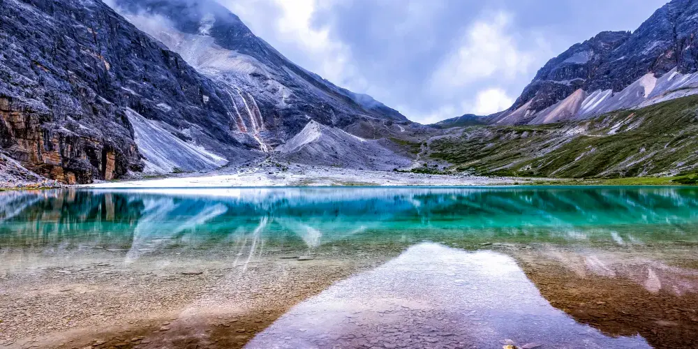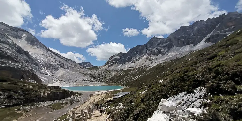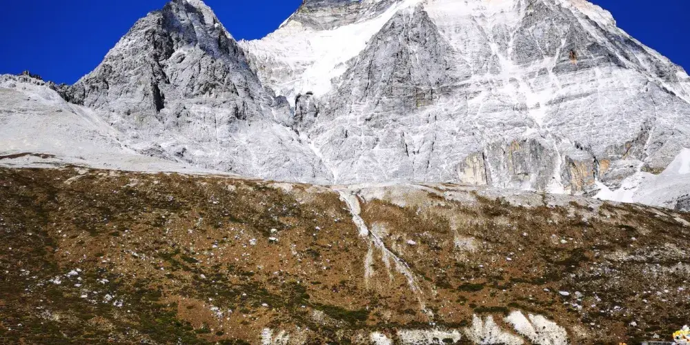 稻城亞丁的三神山由仙乃日、央邁勇、夏諾多吉三座雪峯組成,分別代表觀音菩薩、文殊菩薩、金剛手菩薩。三座山峯終年白雪皚皚,遙相呼應,直逼雲天,懾人心魄據佛教的典籍聖地咱日祕相記載,世界佛教二十四神山,它排名十一,屬相是雞屬眾生供奉朝神積德之聖地據説轉山一次等於念一億嘛尼的功德,藏曆雞年朝拜,功德倍增。仙乃日(藏語觀世音菩薩)、央邁勇(藏語文殊菩薩)、夏諾多吉(藏語金剛手菩薩)三座雪山相距不遠,各自拔地而起,呈三角鼎立,藏傳佛教稱為“日松貢布”,意為三怙主福山。北峯仙乃日海拔6032米,南峯央邁勇海拔5958米,東峯夏朗多吉海拔5958米,三座雪山峯峯形各異,但都潔白無瑕,一塵不染。山腰茫茫林海,飛泉瀑布於其間,山腳寬谷曲流,鑲嵌着明鏡般的湖泊。雪峯、冰川、森林、溪流、瀑布、草甸、湖泊有機的組合,野生動物出沒於其中,託出了一方靜謐的凈土。