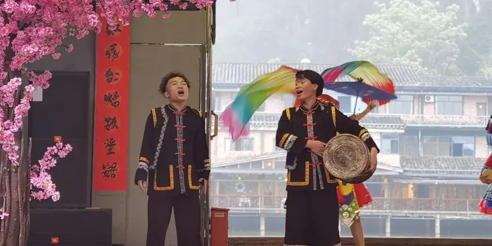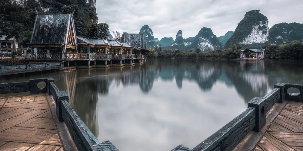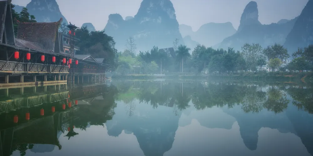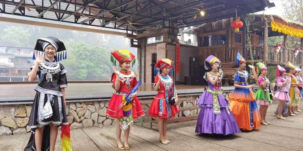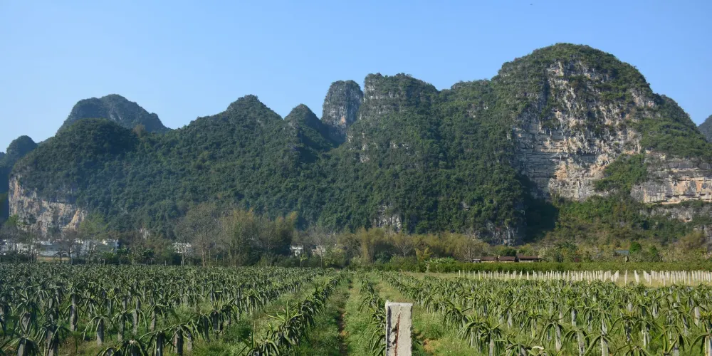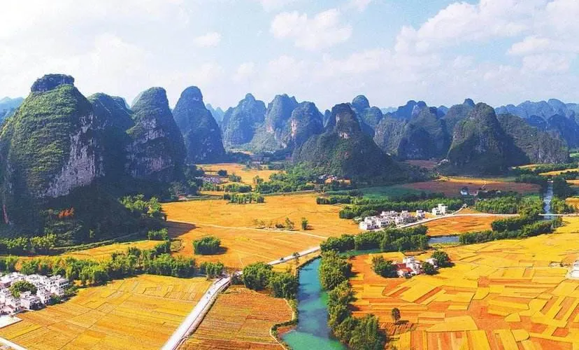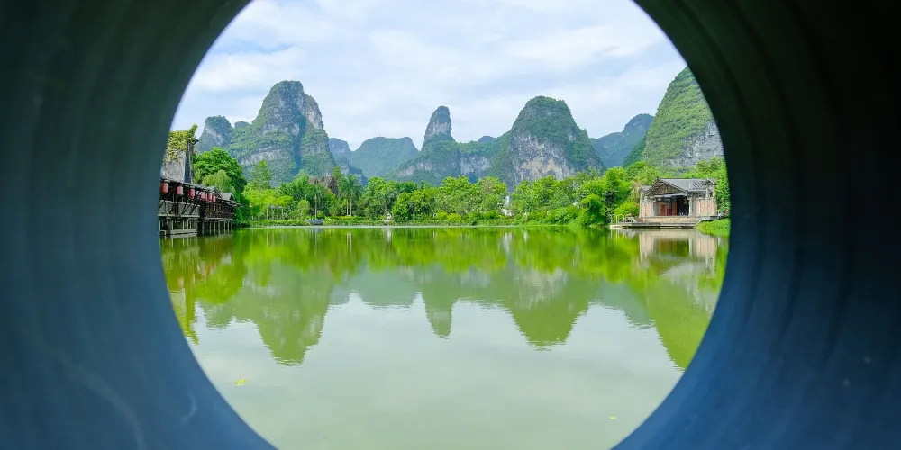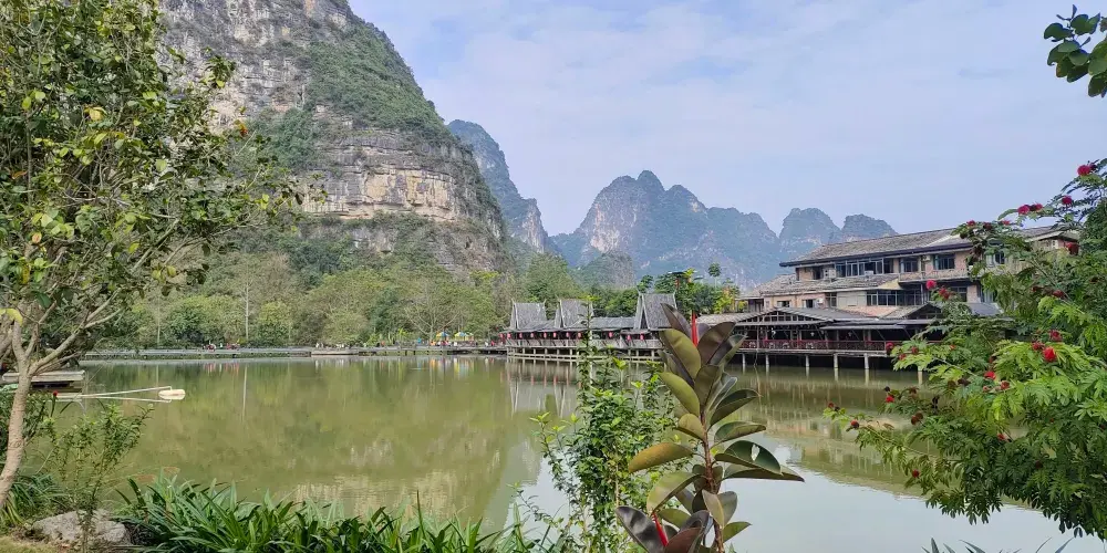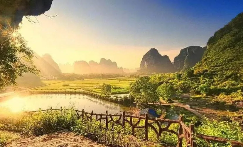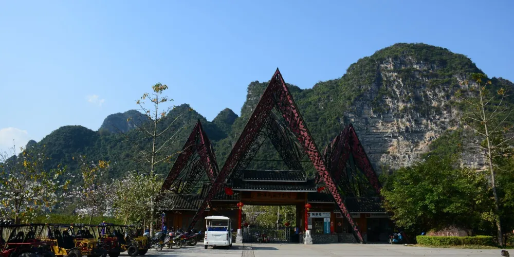 壯族民居博物園素有“小桂林”之稱。方圓20公里的景區屬於喀斯特地貌,發源于越南的名仕河從中穿過,蜿蜒曲折盤繞在萬點峯巒之間。景區內河水清澈,田野綠茵,風光旖旎,風景秀麗,一派山水田園風光。有人工湖景、壯族村落、土司民居、竹排漂流和風情小街等五個功能區。