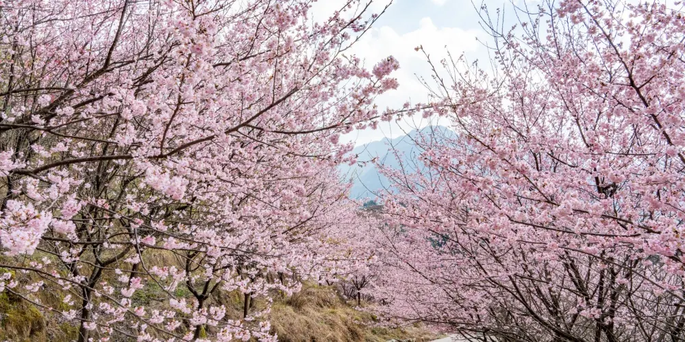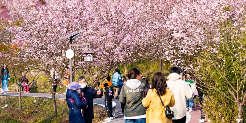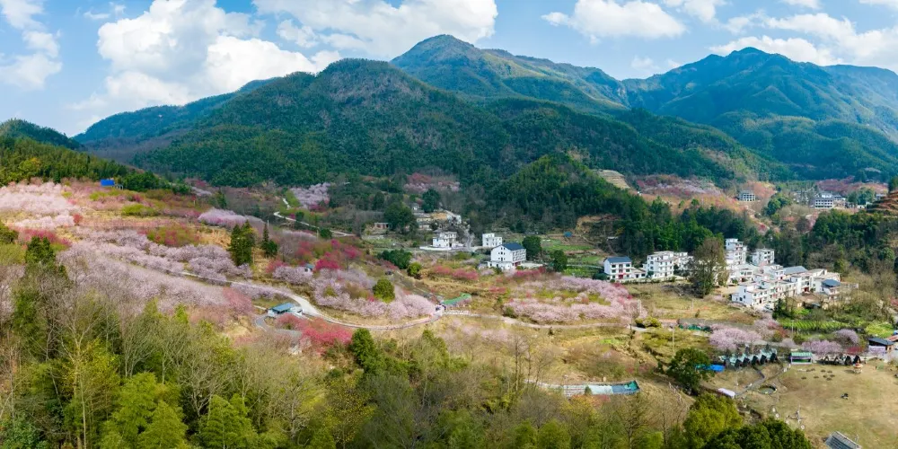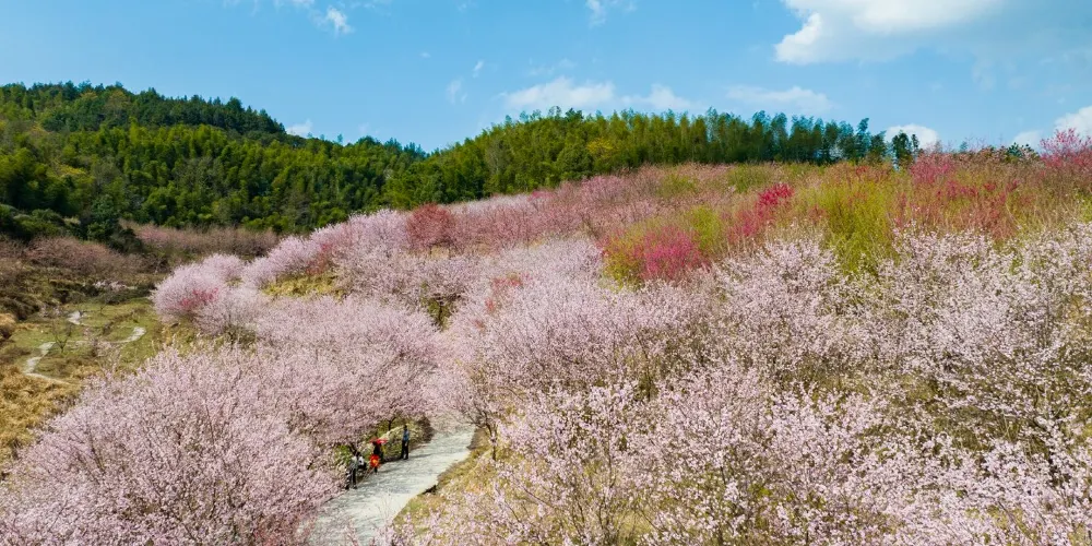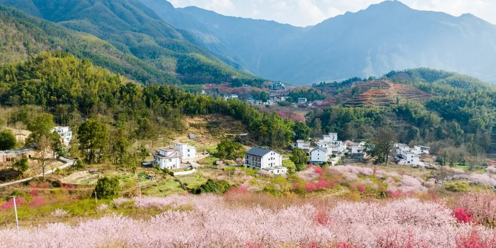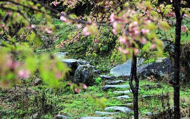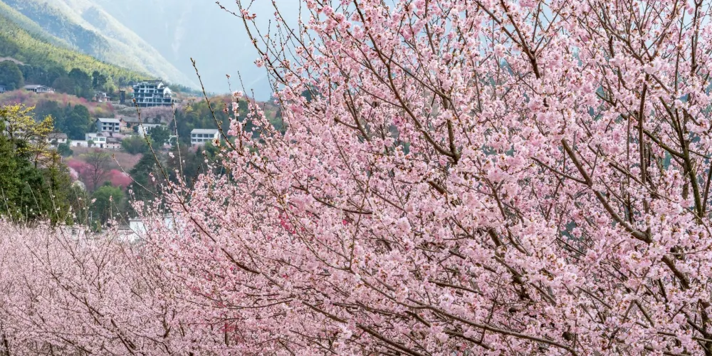 明月山花海原居櫻花山谷位於宜春市明月山腳下温湯鎮潭下村二十四橋明月園約100米處,這裡有8大品種的3000畝櫻花谷、花海、原生態農居、瀑布、徒步踏春等景點,全程徒步遊覽完需3個小時。久困城市的鋼筋水泥樊籠,值此明月山腳下花海原居3000畝櫻花海綻放之時,當邀三五好友,攜家眷老幼,走出“官舍家宅”重返自然,賞一賞這栽滿山的花海盛景。