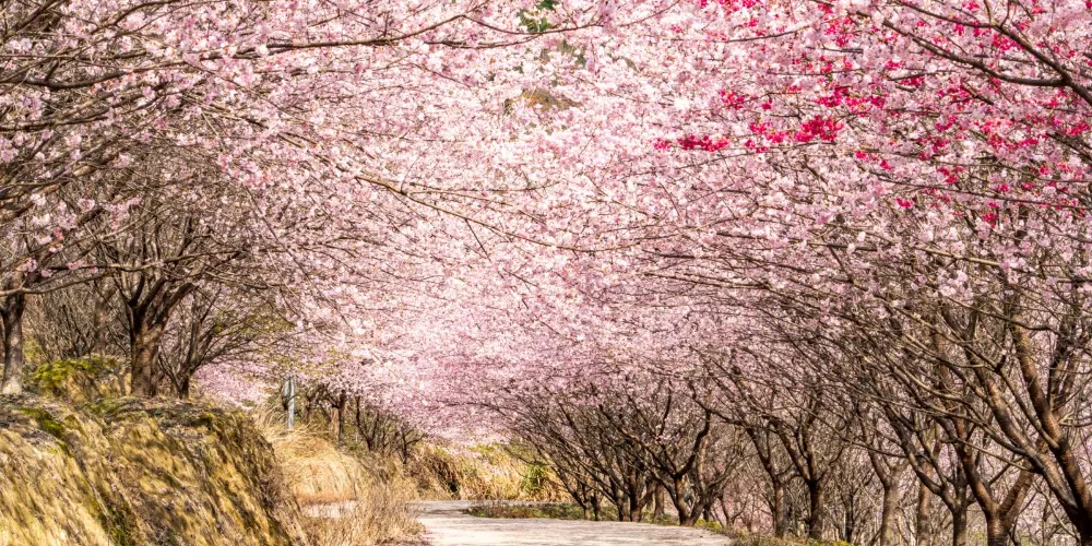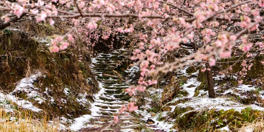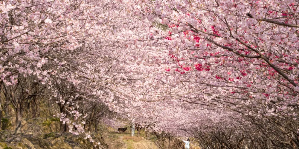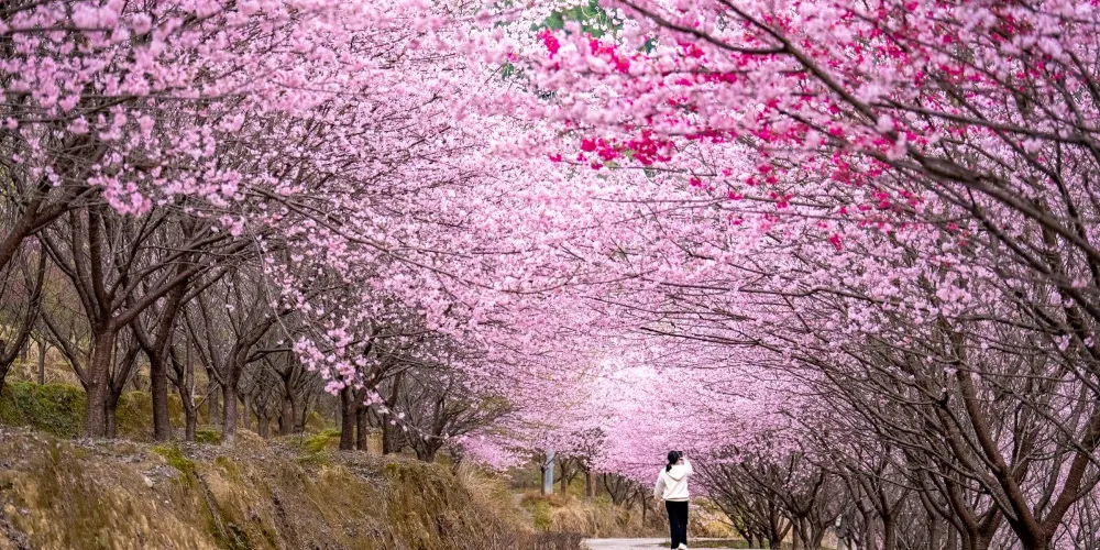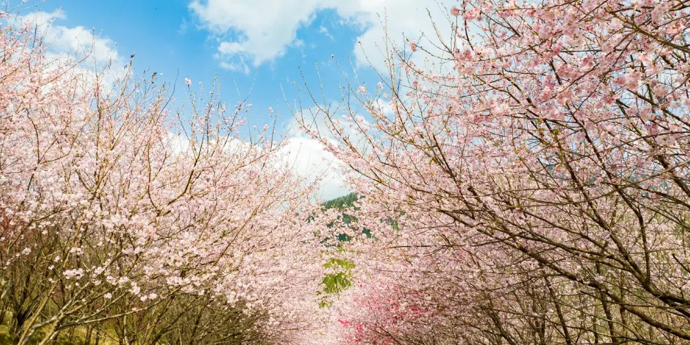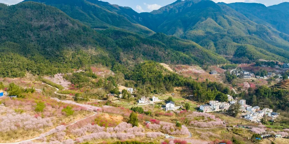 明月山花海原居櫻花山谷位於宜春市明月山腳下温湯鎮潭下村二十四橋明月園約100米處,這裡有8大品種的3000畝櫻花谷、花海、原生態農居、瀑布、徒步踏春等景點,全程徒步遊覽完需3個小時。久困城市的鋼筋水泥樊籠,值此明月山腳下花海原居3000畝櫻花海綻放之時,當邀三五好友,攜家眷老幼,走出“官舍家宅”重返自然,賞一賞這栽滿山的花海盛景。