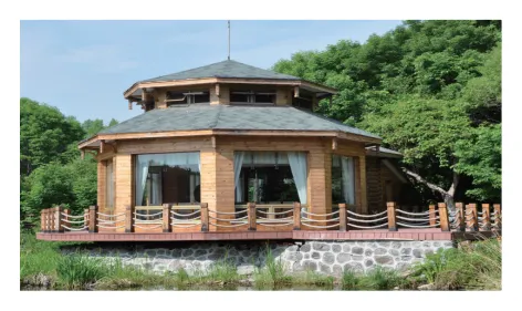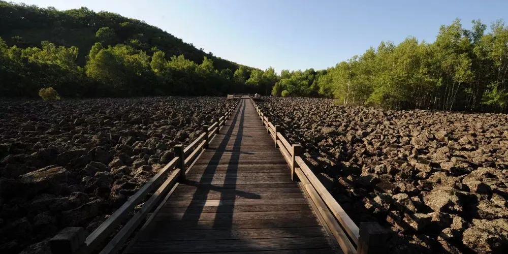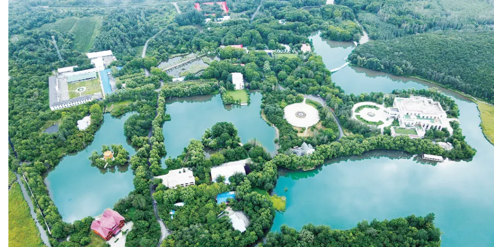 鏡心園(飛龍潭山莊),是以一萬年前火山噴發熔巖流冷卻後形成的火山巖石羣景觀和原始天然的熔巖濕地景觀為依託,集住宿餐飲、旅遊觀光、會務服務於一體的綜合性度假景區。主要由服務中心、多功能會議區、自然遊覽觀光區和住宿、餐飲區環繞而成,四季風光秀麗,原始自然景觀與人文景觀資源十分豐富,原始森林覆蓋率高達95%以上,特色景觀步步皆是。飛龍潭憑藉著秀美的自然風光、完善的硬件設施、熱情周到的服務,被中國美術家協會定為指定創作基地。