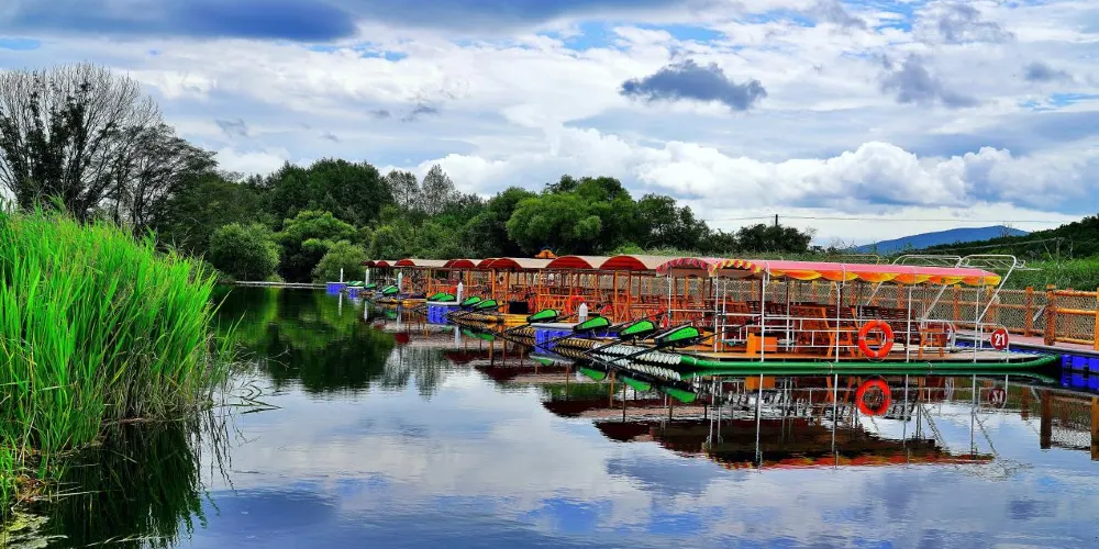 景區內有鏡心湖竹筏遊船、天坑地縫、虹鱒魚場、星象廣場、落霞濕地、石海景觀、幸福公社農業園區等景點。