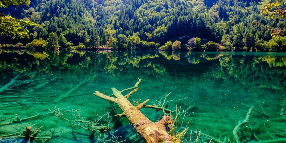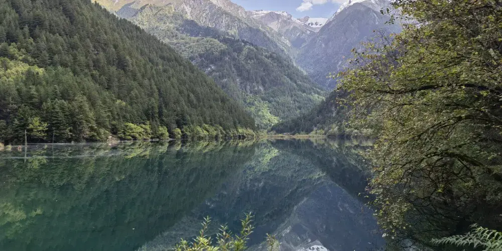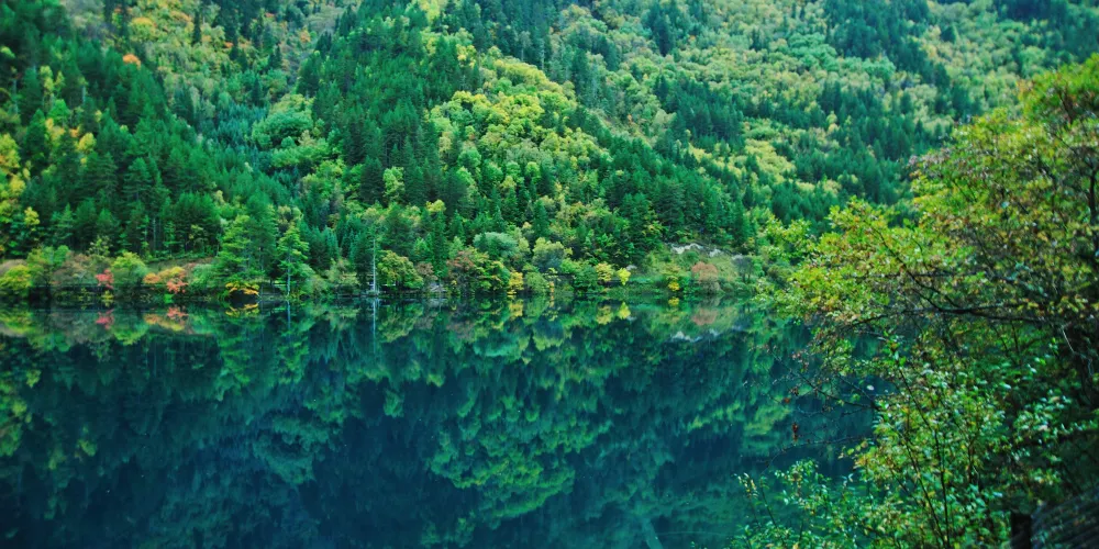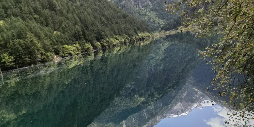 鏡海是九寨溝景區欣賞倒影的好地方,水質清澈,可以看到魚在空中游,鳥在水中飛的奇景。相傳女山神沃諾色嫫在失去了男山神達哥送的定情信物後,每天到鏡海邊梳妝,演繹著他們的愛情神話,從此鏡海就成為像徵愛情的公園。
