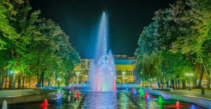 鏡子泉在1947年落成,以紀念蘇聯衞國戰爭。它和對面的哈爾科夫國家大劇院一起成為城市的標誌性景觀,夜景尤其美。當地人約會或是拍結婚照都會選在這裏,所以又被為“幸福泉”