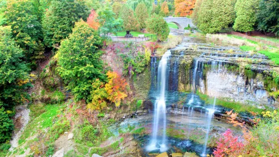韋伯斯特瀑布保護區位於哈密爾頓西邊的Dundas小鎮,主要景點包括韋伯斯特瀑布、Tew's瀑布以及Dundas山峰,都是尼亞加拉斷裂帶上形成的自然景觀。韋伯斯特瀑布是哈密爾頓地區最寬的瀑布,高24米,瀑布周邊均為公園綠地。從韋伯斯特瀑布沿小徑向北0.75公裡可以到達Tew's瀑布,高41米,但寬度不及韋伯斯特瀑布。從Tew's瀑布沿步道向東南1.25公裡可以到達Dundas山峰,是秋天觀賞楓葉的好去處。