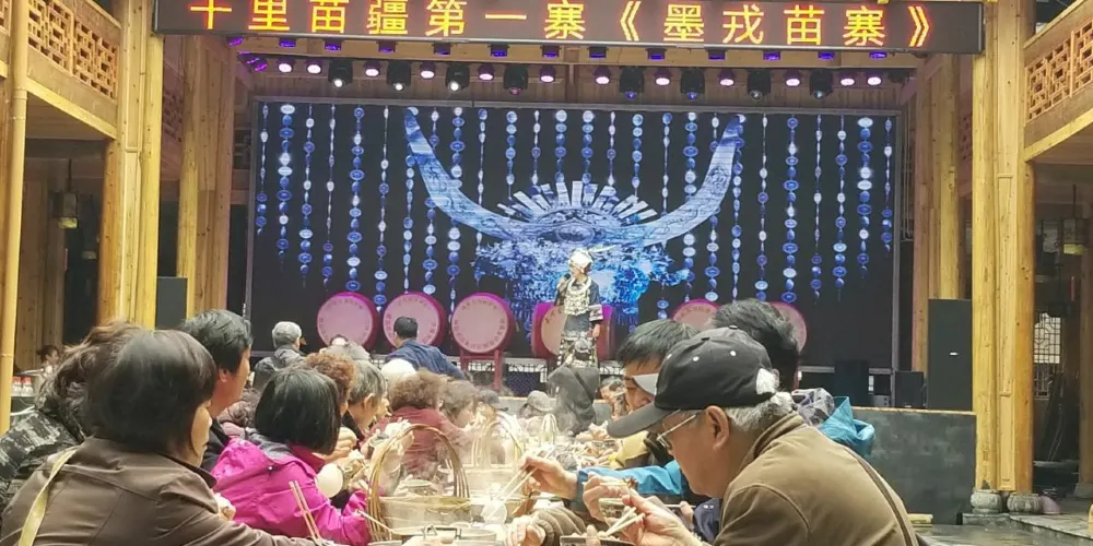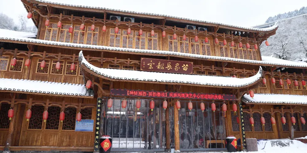 墨戎苗寨是一處民俗風情濃鬱的苗寨。墨戎苗寨有湘西“小千戶”之稱,對了歌、喝了酒、擊完鼓,才能走進這個曾經是“竿子營”的古苗寨:“竿子營”的營房、烽火台流淌著曆史的滄桑;精彩絕倫的苗家手工銀飾鍛造技藝會讓人歎為觀止;在楊占鼇將軍的故居裡,去感受苗族人的家國情懷、民族大義;在茶農家裡,去品鑒古丈毛尖;奧運會展演過的“四方花鼓”會讓您感受到戰鼓的震撼;苗人的巫儺神技更會讓您瞠目結舌,目瞪口呆。