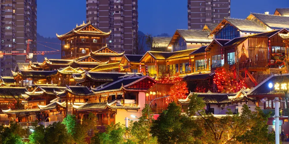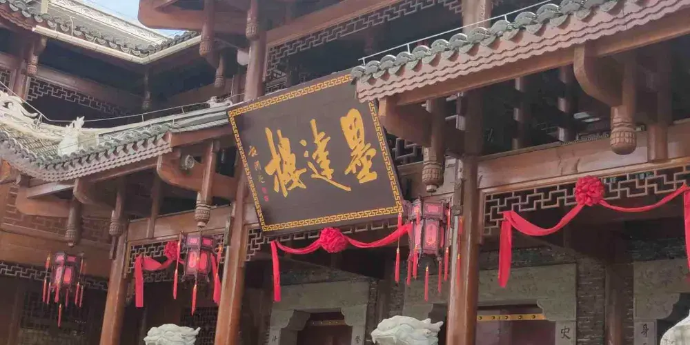 墨達樓,由低向高呈五梯台進式,也叫沖天樓,前臨貢水河,後依墨達山,樓中有閣,閣上有亭,迴廊相連,夜景非常漂亮,是當地的標誌建築。