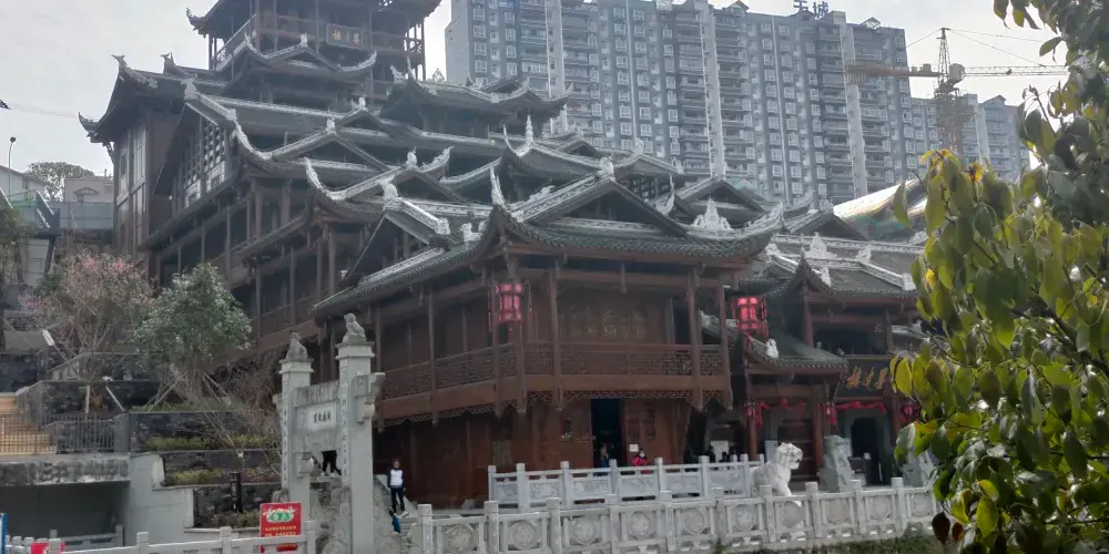 則評價文瀾橋,坐落於湖北恩施土家族苗族自治州宣恩縣的貢水河上,是一座極具特色的仿古風雨橋。文瀾橋全長 80 米,寬 10 米,高約 26 米,五礅四跨,橋下部為鋼混結構,上部為全木質結構。其採用侗族花橋與鼓樓及土家族涼亭橋相結合的建築風格,22 架木排運用中國南方特有的穿斗式組合結構,榫鉚銜接的樑柱體系,亭簷上下均為飛角斗拱,屋脊瓦沿設有古樸裝飾,盡顯民族建築之美。橋頭南北兩面的磚石結構門樓外,分別立有座式麒麟和走式獨角獸各一對,寓意 「風調雨順」。