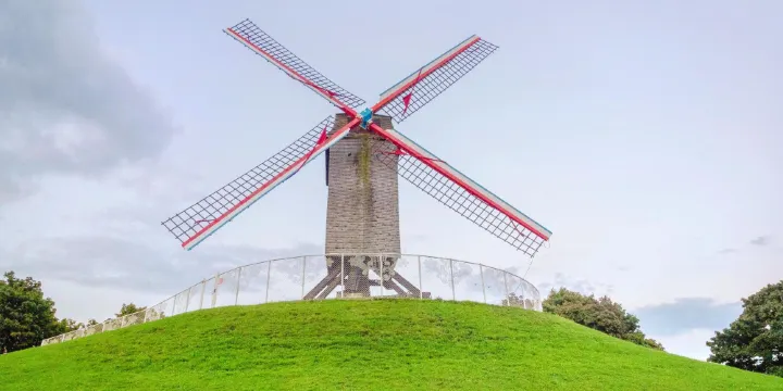 風車群在布魯日東部的護城河邊,又有綠地,所以看上去十分具有小清新氣質的田園風情。在河邊散步,或者租一輛單車繞風車群騎行都很愜意。