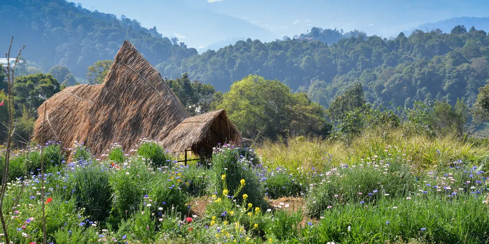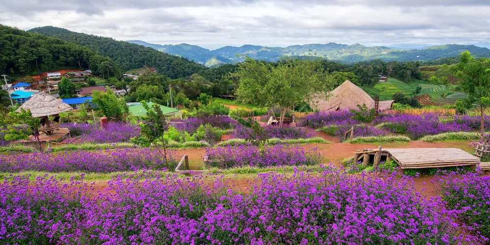 夢秸隱藏在清邁眉林的一座山穀中,位于海拔350米高的山上,這裡是苗族的少數民族村。祥和安靜的山地環境,潔淨清新的空氣。在這裡,可以讓自己的身心都得到最大的放鬆。除了是觀景的勝地,還是很多泰劇喜歡的外景之一。在清晨可以看美麗的霧海,也可以觀賞迷人的日落, 或者徜徉在這裡的大藥草園裡。一年四季皆可欣賞到不同的花景。如果時間有限,不想舟車勞頓,又想欣賞清邁獨有的山景,感受這裡浪漫的氣息,夢秸是很好的選擇之一。