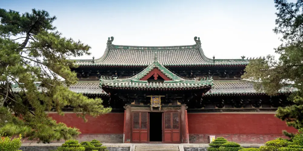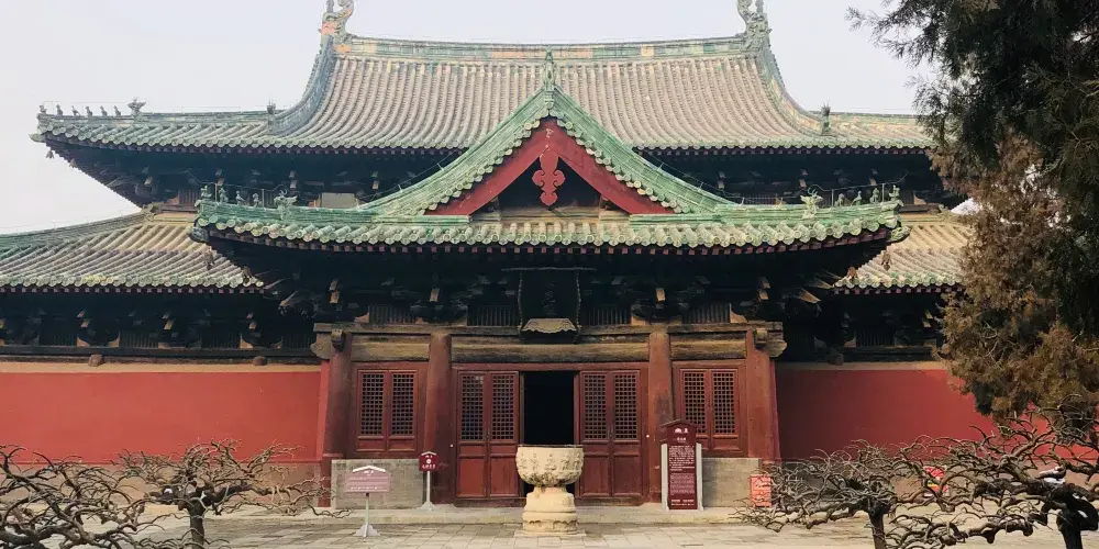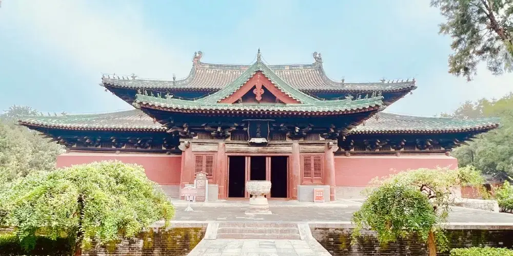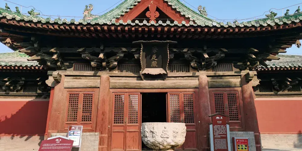 摩尼殿佈局奇特,正方形殿身的四面正中各出一山花向前的歇山式抱廈,使平面形成十字形,建於北宋。