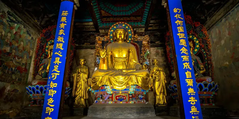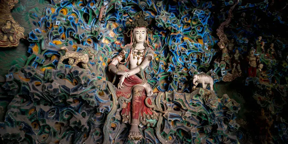 摩尼殿係另一處不容錯過嘅重點景觀,殿內北壁供奉一尊五彩倒坐觀音菩薩像,其姿態獨特、色彩絢麗,造型極具寫實感與神性美。魯迅先生曾盛讚該像「將神人格化」,被譽為「東方美神」。此外,摩尼殿本身建築風格鮮明,為宋代原構,其斗拱做法尤為特殊,被著名建築學家梁思成推為宋代建築中嘅「孤例」,具有極高嘅建築藝術與研究價值。