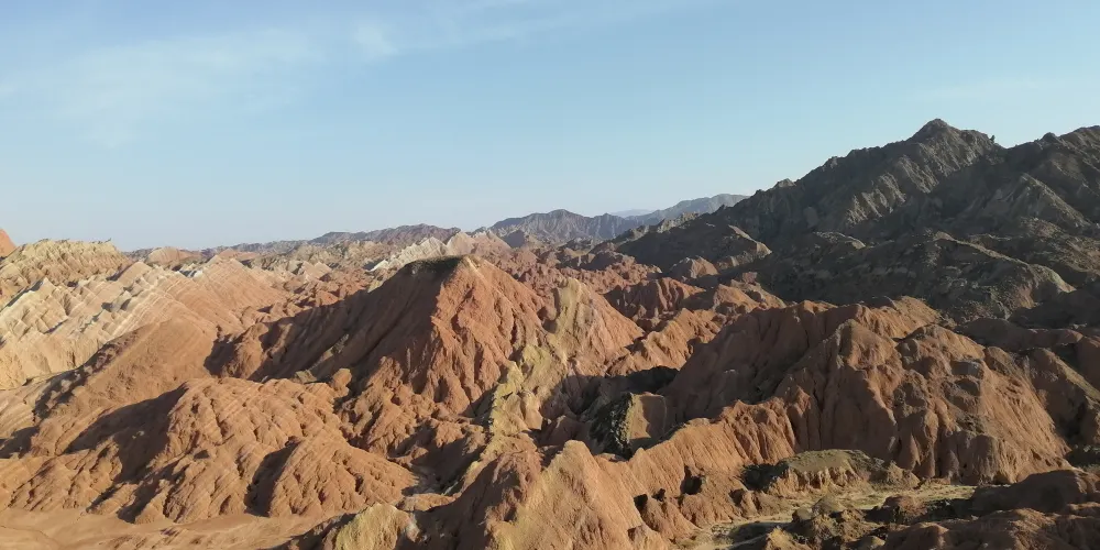無數小丘就像眾多僧侶身披紫紅架裝支,一同伏地向,橫卧的佛祖朝拜,營造出一派祥和莊嚴的氛圍。“眾僧拜佛”實際上是一組層狀砂巖和泥質粉砂巖遭受強烈風化,頂部在流水的侵蝕和塑造之下,大多形成柔和的線條、渾圓的形態,山腳及低窪處則形成大量紫紅色的小型巖丘。