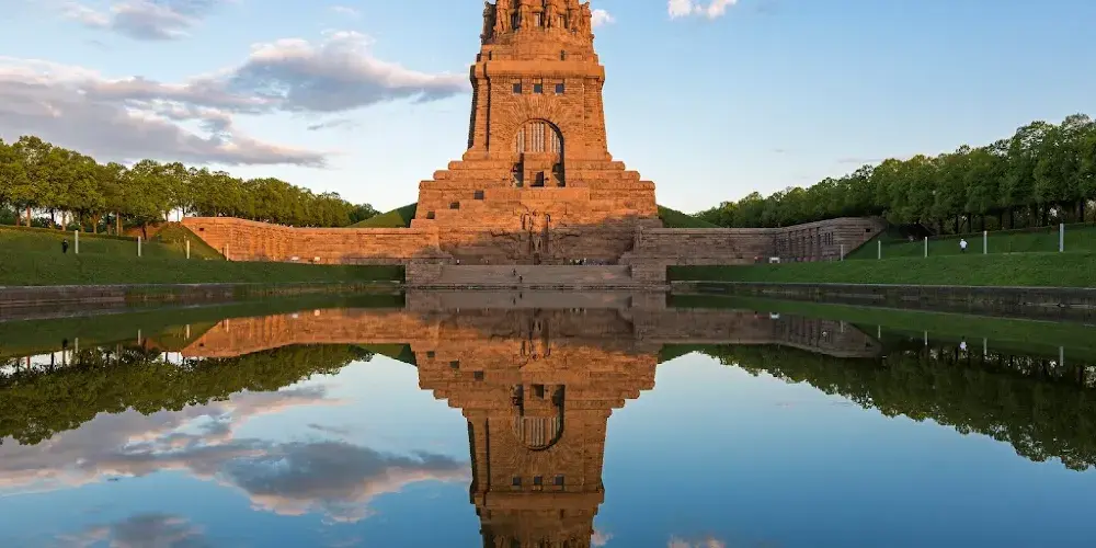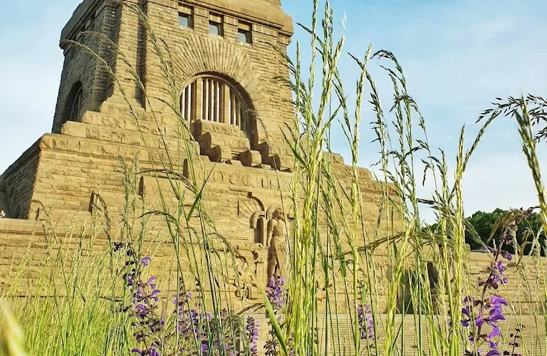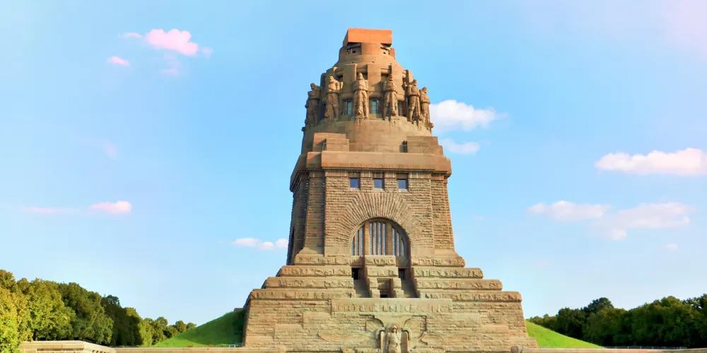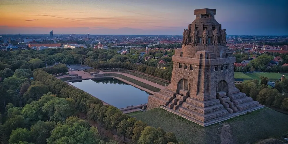為紀念1813年10月16日至19日,在萊比錫城南為對抗拿破崙入侵德意志而發生的萊比錫戰役。紀念碑高91公尺,為目前歐洲現存較大的紀念碑。紀念碑高91米,有500階梯。碑體正面是高達十公尺的英雄浮雕,頂端是四個持劍而立的巨型戰士,德意志的民族精神甚至是納粹主義都可以從這裡找到起點。