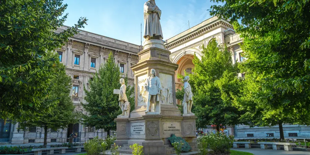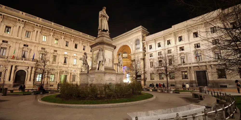 米蘭大教堂廣場位於米蘭市中心,周邊有很多重要的建築,其中米蘭的地標米蘭大教堂就坐落於此。廣場隨著大教堂的修建逐步發展起來,並以大教堂命名。廣場中央聳立著意大利王國第一任國王維多利奧·埃瑪努埃爾二世的騎馬銅像。廣場周邊還有埃馬努埃萊二世長廊、新古典主義建築風格的王宮、大教堂博物館等一系列的重要建築,散發出濃郁中世紀風情。廣場上可以看到成群悠閒信步的鴿子,有時到了傍晚還能看到隨興演出的街頭表演。廣場附近匯聚了很多商場、購物中心、精品專賣店和高級餐館,是米蘭知名的休閒購物區域。