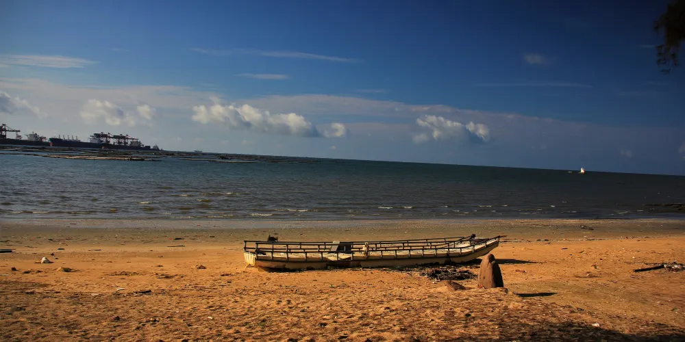 位於江山半島東側的牛頭山腳下,東面與防城港隔海相望,相隔僅幾百米,因其形似彎月而名。月亮灣由3個灣組成,沙灘長約2公里,水面平穩,沙質細軟,潔凈金黃,灘後防護林帶鬱鬱葱葱。月亮灣現已開發為海濱公園,是遊人漫步觀海、嬉水娛樂的好去處。
