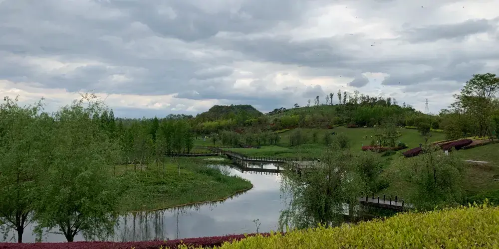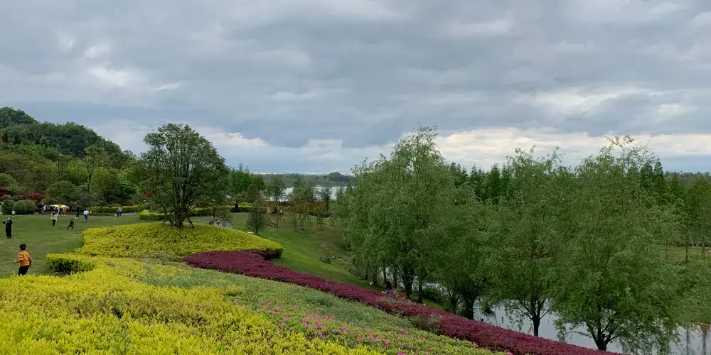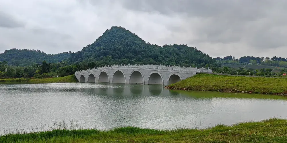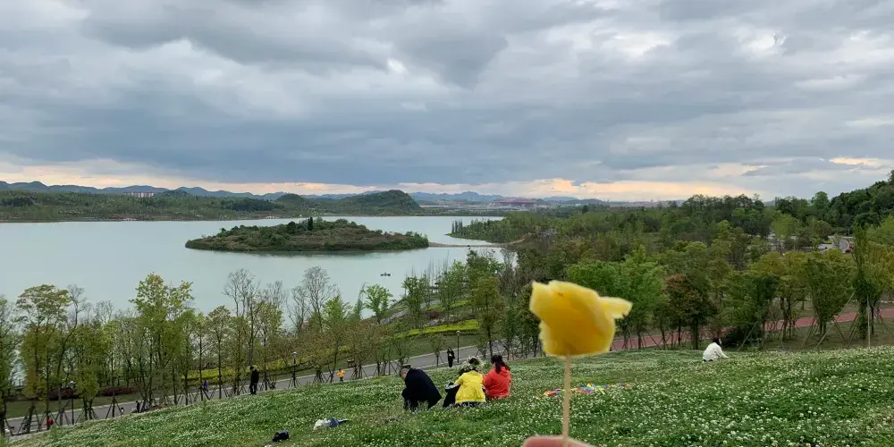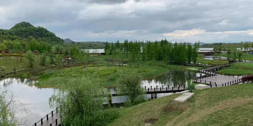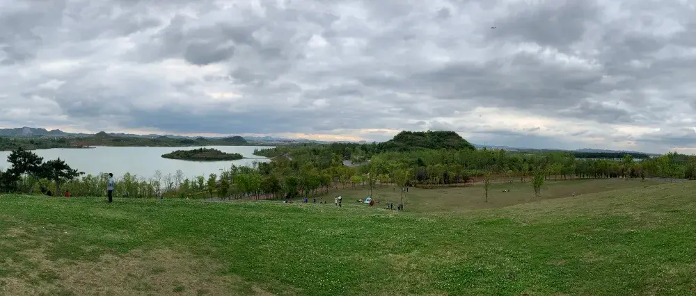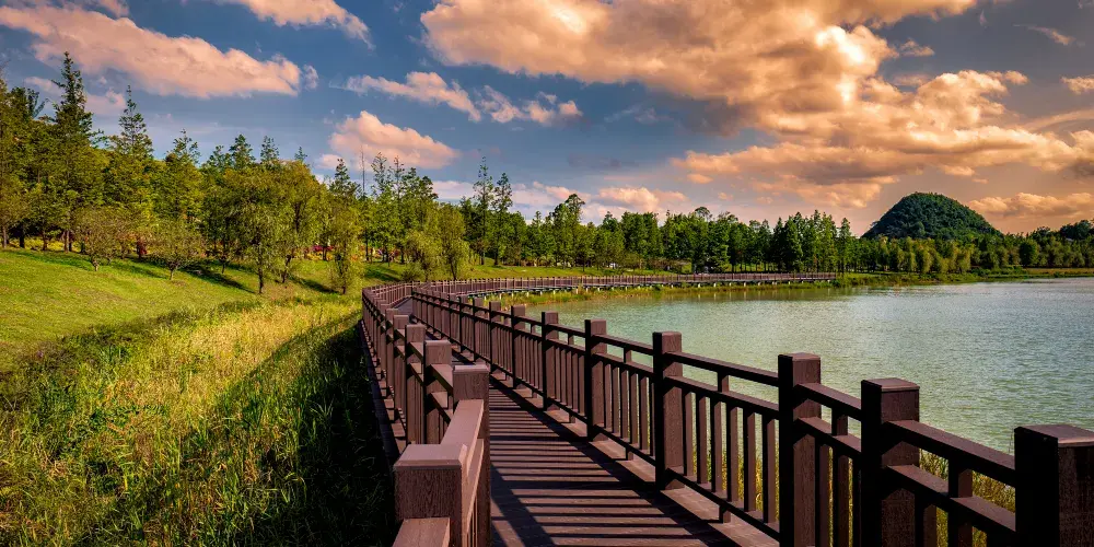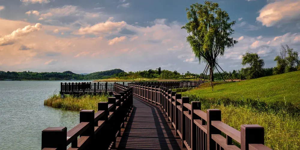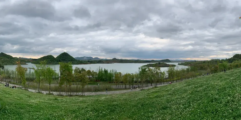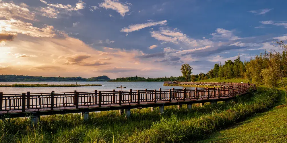 月亮湖位於貴安新區,湖邊建的有一條實木走廊,可以在走廊上漫步,欣賞湖光美景,這裏還是一個婚紗攝影取景地,景色十分優美。