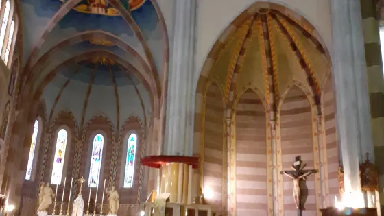 • 主教座堂有著十九世紀哥德復興風格的立面,其外部使用色調深淺不同的白、綠和粉紅多色的大理石塊所鋪砌而成,色彩斑斕而和諧