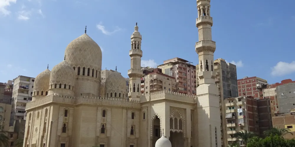 摩西·阿布·阿巴斯清真寺是亞曆山大较大、较美的清真寺,始建於1775年。摩西·阿布·阿巴斯是一位伊斯蘭學者,生於阿拉伯帝國統治時期的西班牙,後來來到亞曆山大,並且修建了這座清真寺。清真寺在1943年曾經重建,融入了安達盧西亞伊斯蘭建築風格,加上了四個穹頂和一個高聳入雲的尖塔,清真寺內部有一條8根花崗岩柱支撐的柱廊。