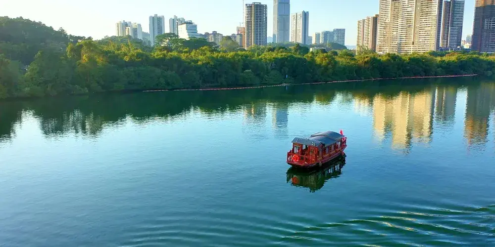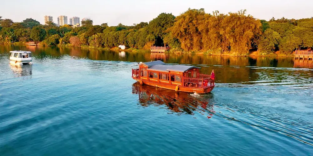 乘坐「最美增江遊」的遊船,沿途眾多熱門「打卡點」盡收眼底。千鳥歸巢的聖皇洲,充滿生機與活力;綠意蔥蘢的鶴之洲濕地公園,盡顯自然生態之美;風光旖旎的荔湖濕地,水色天光,美不勝收;造型精美的摩天輪,夢幻浪漫,成為眾人矚目的焦點。這些超「出片」的網紅景點,讓遊客在遊船上就能輕鬆定格美好瞬間。以智能遊船「汐」的包船服務來說,遊客可自由選擇50分鐘或110分鐘的線路。50分鐘線路節奏明快,迅速捕捉沿岸精華景致;110分鐘線路則如徐徐展開的山水畫卷,讓遊客能充分沉浸其中,悠然飽覽摩天輪的夢幻、荔湖濕地的野趣以及聖皇洲的獨特風貌。在遊船緩緩前行間,增城的城市底蘊、深厚文化與心底的鄉愁記憶被一一喚醒,「最美增江」的綺麗風光就此深深烙印在遊客心間,化作一段難忘的美好旅程。