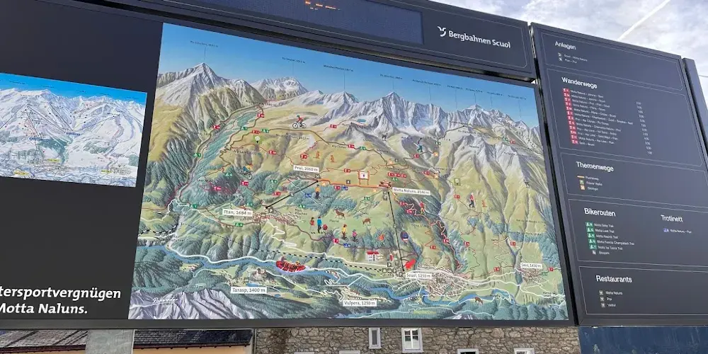 Skigebiet Motta Naluns位於瑞士格勞賓登州施庫奧爾鎮(Scuol),坐擁阿爾卑斯山壯麗景緻,是東阿爾卑斯山備受家庭與滑雪愛好者青睞的滑雪勝地。雪場以現代化纜車系統為核心亮點,配備高速纜車,運行平穩且覆蓋全山.