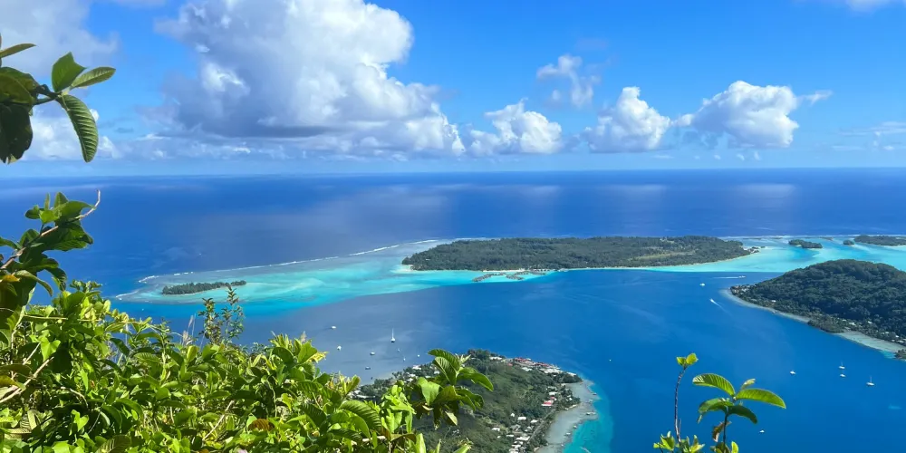 一座雙峰火山的遺跡聳立在波拉波拉島中部。這座長期熄滅的死火山如今覆蓋著濃密的綠色森林。美麗的青綠色潟湖環繞在小島周圍,有一條沙壩將潟湖與大海分隔開。沙壩外是堡礁,並點綴著稱為「Motu」的沙洲小島。