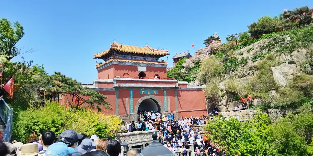 南天門又名三天門,位於泰山十八盤的盡頭,創建於元至元元年(1264年),在登山盤道的頂端,由下往上看猶如天上宮闕,所以取仙境場所南天門命名。穿過南天門就是泰山山頂,有從“人間”到“天上”之說。南天門歷史悠久,經明清重修,建國後又翻修兩次,現在建築保持了清代的風格,但依舊壯觀。