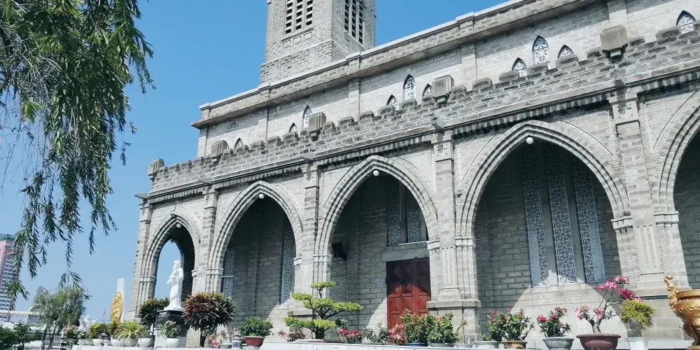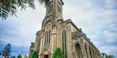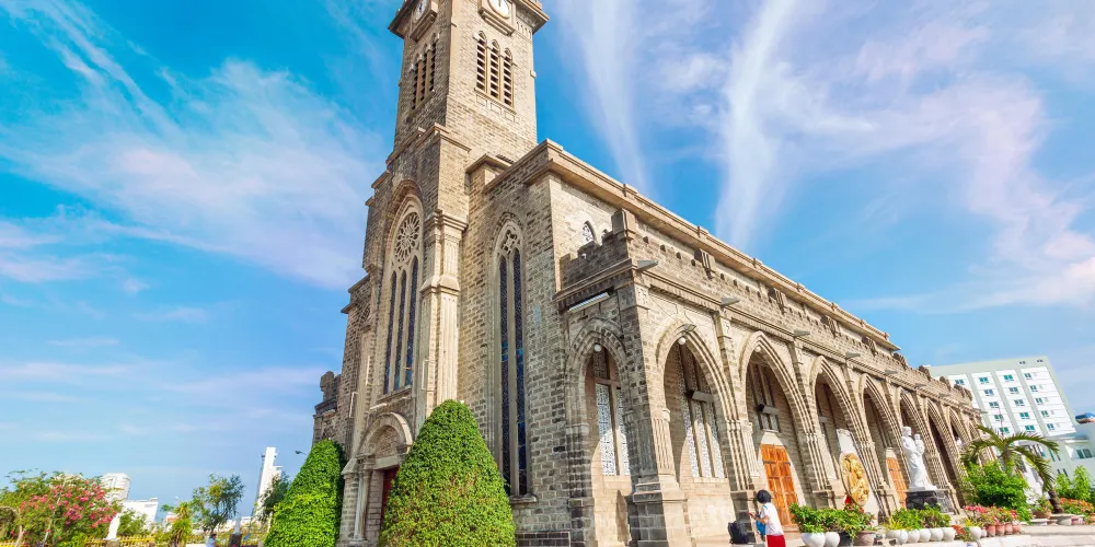 芽莊大教堂坐落於芽莊市中心,是一座典型的哥特式建築,氣勢恢宏的鐘樓非常醒目,而建築周圍的平台有著不錯的視野,可以俯瞰芽莊街景。教堂內部的四面是石造的內壁,卻顯得十分複古,陽光照射進來,教堂內部變得很有色彩。教堂會舉行彌撒,常能聽見誦經聲或唱詩班的歌聲。