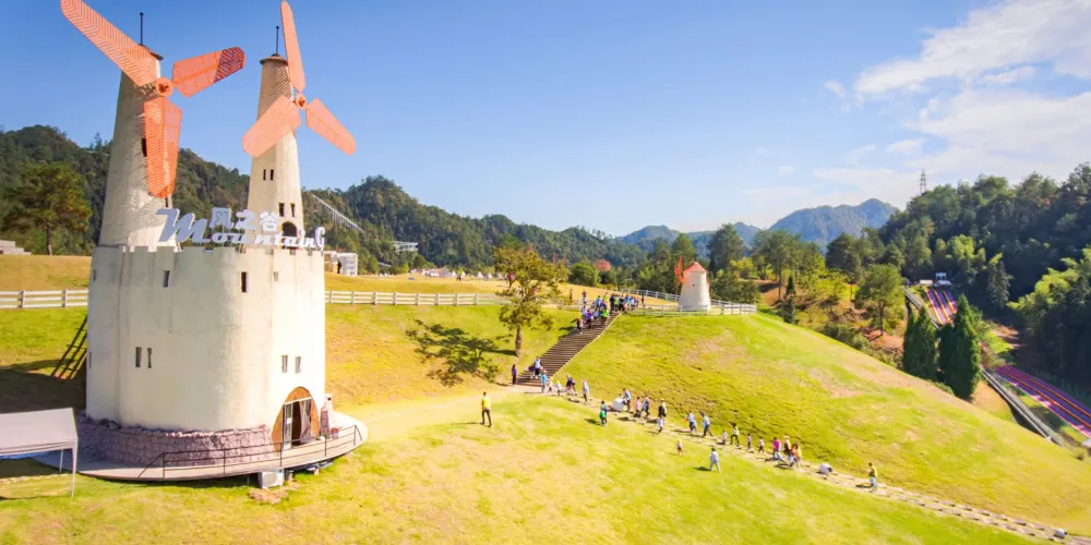 Mountain Games風之穀主題背景為500 大草原,主要項目有:小火車、熱氣球、草地卡丁車、網紅鞦韆、3A大鞦韆、彈弓飛人、紐西蘭滑板車、兒童滑步車、碰碰球、草上飛、攻防箭等。
