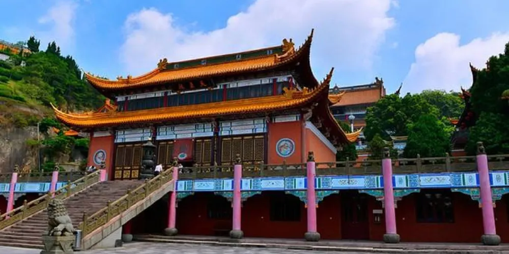則評價慈雲極樂禪寺位於岱山島東南部的磨心山,由慈雲庵擴建而成。初建於清朝乾隆年間,距今有240多年歷史。該寺自始建至今歷盡劫難,於1983年起由國內外香客募資修葺、擴建,現在已形成了較大的規模,主要有停車場、山門、梵谷清音、放生池、鐘樓、鼓樓、大雄寶殿、玉佛殿、蓬萊十景詩牆、藏經樓、地藏殿、怡心亭、慈雲庵、玉佛寶塔、蓬萊茶園等組成,佔地面積近百畝。從停車場拾級而上,左側為梵谷清音洞,洞外有放生池,經過高高的台級步入蓬萊佛國門樓(進山門),左側為鼓樓,右側為鐘樓,中間為玉佛殿,約200平方米。玉佛殿的上方為禪寺的主殿——三聖殿,層高25.3米,主供近10米高的鍍金“西方三聖”,整個大殿氣勢宏大,金碧輝煌。
