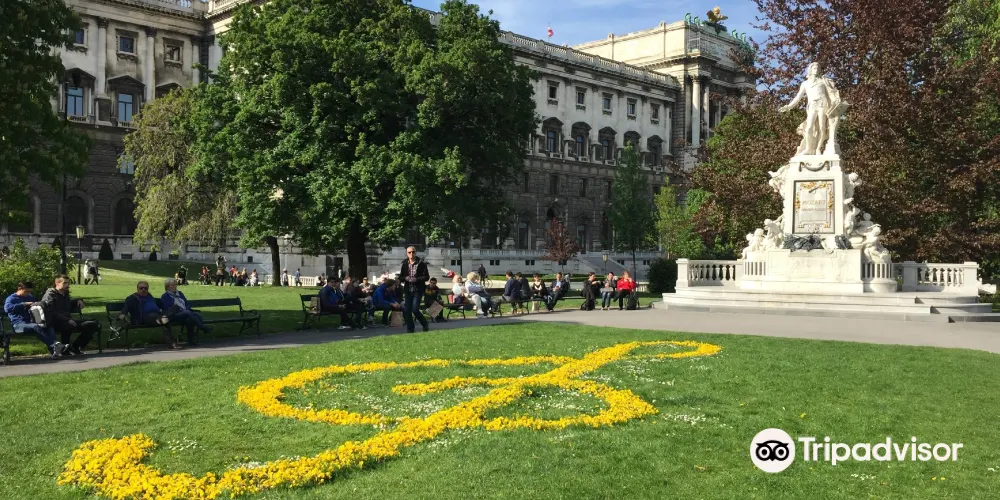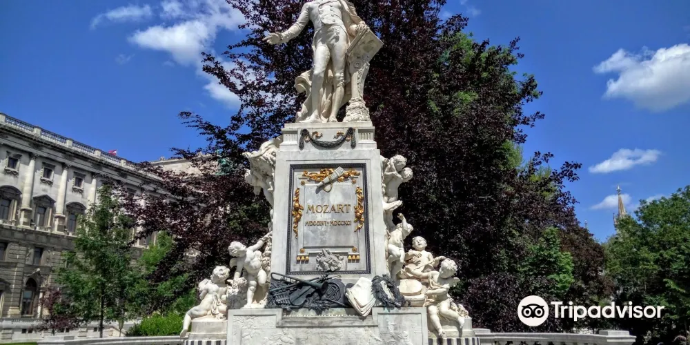 莫紮特紀念像位於與霍夫堡宮毗鄰的城堡花園內部,是城堡花園中最著名的雕像。莫紮特紀念像位於城堡花園的西南角,正對著環城大道。