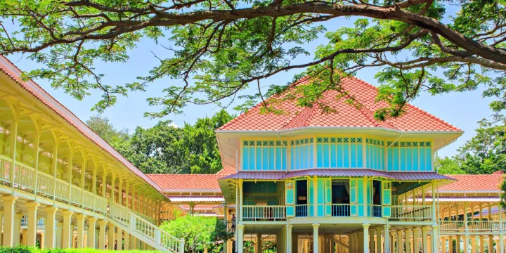 愛與希望之宮位於華欣的海灘邊,這是一座清新婉約的皇家宮殿,鵝黃的柱子,淡藍的牆面,讓流連其中的人心生寧靜。拉瑪六世國王為了希望他的愛妃能為他生個小王子而修建了這座宮殿。然而未能如願,在王妃生下一名小公主後,拉瑪六世便移民至瑞士定居。這是一座柚木高腳宮殿,裡頭用1080支柱子撐起,總共16棟高腳建築,中間用長廊連接,這裡擁有絕佳的海景風情,來此便能感受到皇室生活的愜意。