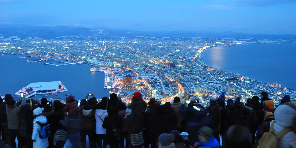 日本函館山觀景台位於北海道函館市,是個以壯麗夜景而聞名的旅遊勝地。觀景台是欣賞函館市全景的理想地點之一。從函館山觀景台,遊客可以俯瞰整個函館市區、函館港以及津輕海峽的壯麗景色。白天,觀景台提供了一個理想的視角,可以欣賞城市與自然的和諧美景。而到了夜晚,函館市的燈火通明,形成一幅璀璨奪目的畫卷,吸引了無數遊客前來觀賞和拍照。前往函館山觀景台的方式多樣,遊客可以選擇搭乘纜車、巴士或開車上山。纜車是很受歡迎的選擇之一,沿途可以欣賞到不斷變化的美麗景色。對於喜歡健行的遊客,也可以選擇步行上山,沿途的自然風光同樣令人陶醉。