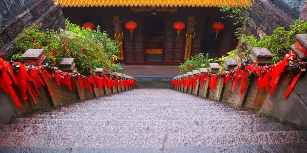 廣濟寺的殿宇依山而建,自下而上有藥師殿、大雄寶殿、地藏殿、廣濟寺塔,共有88級台階,爬山禮佛的體驗令人彷彿置身於九華山。