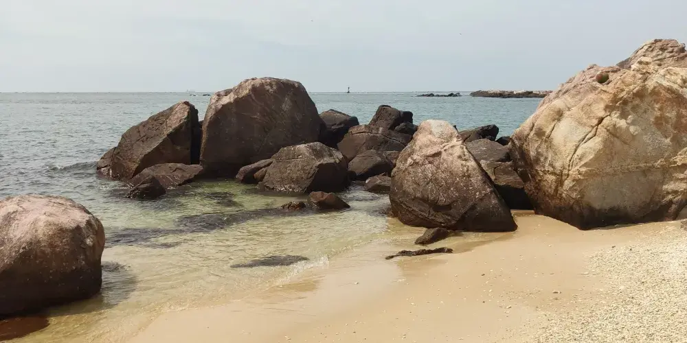 形狀似三角形,位於文昌市北端的鋪前鎮,形狀似三角形,由木蘭頭、木蘭灣和30平方公里的寬闊腹地組成,與七星嶺相連,與海口市海上直線距離49公里,陸路距離90公里。該灣水深浪平,岸邊海底基礎為石質,可停萬噸巨輪,距國際航線3海里,條件成熟時,可闢為深水港。木蘭灣腹地開闊平緩,保持着良好的生態環境。自然風景如詩如畫,綠色草坪猶如天然高爾夫球場。距木蘭灣3公里處是木蘭頭,由7個具有獨立性的月牙形沙灘,怪石區和約6平方公里尖三角形陸地組成。木蘭灣的海南角有海拔97.2米高的航標燈塔,堪稱亞州一。燈塔建築高度74.2米,沿海24海里範圍內的船衹可以見到。嶺下西側為巨石灘,銀白色沙灘上散卧着奇形怪狀的巨石,光滑渾圓,千姿百態。居高遠眺,驚濤拍岸,宏偉壯觀。嶺下東側有綿延的沙灘,白沙疏鬆,海水清澈,是天然的海濱浴場。