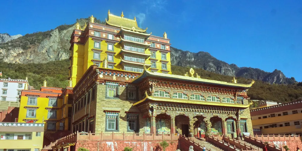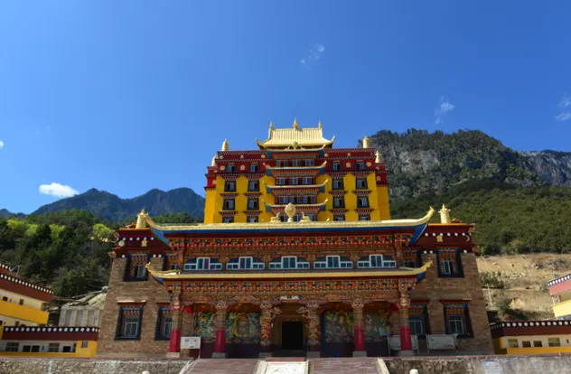 木裏大寺曾是康巴藏區規模較大的黃教寺廟之一,在藏區具有特殊的地位。始建於公元1656年,是繼瓦爾寨大寺、康塢大寺後興建的又一座大寺。藏語全稱——木裏葛丹喜珠曲勒朗巴吉瓦林。木裏大寺的建材以土木為主,式樣顯唐明風格。高20多米的藏式方堡大殿毗連數百間僧侶住室。主體建築氣勢恢宏而彰顯華麗。在空間組合上,院落重疊,迴廊曲欄,錯落有致,門廳、壁柱、繪有各種彩繪壁畫、圖案。前殿內供奉無量壽佛、彌勒佛、文殊菩薩等塑像。佛座前設木裏佛之法椅寶座,上掛錦緞傘蓋,與頂幢、幡飾相輝映,莊嚴肅穆。後殿端坐10米多高的甲瓦強巴銅像,光彩奪目、寶相莊嚴。小殿內供有觀音菩薩、黃教創始人宗喀巴(又名洛桑扎巴)、班禪、蘇朗扎巴三代佛等塑像。鼎盛時期有僧侶七百七十人。1967年遭損毀。1982年由國家撥款在原址上重建恢復至現狀。