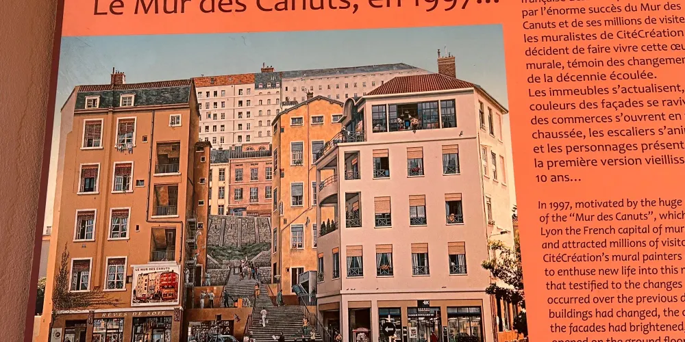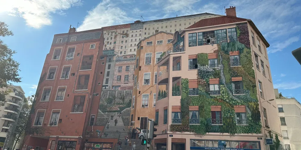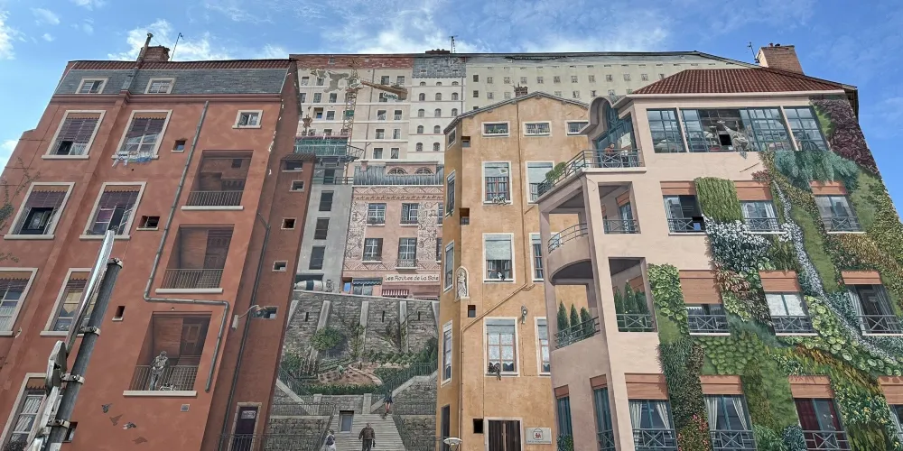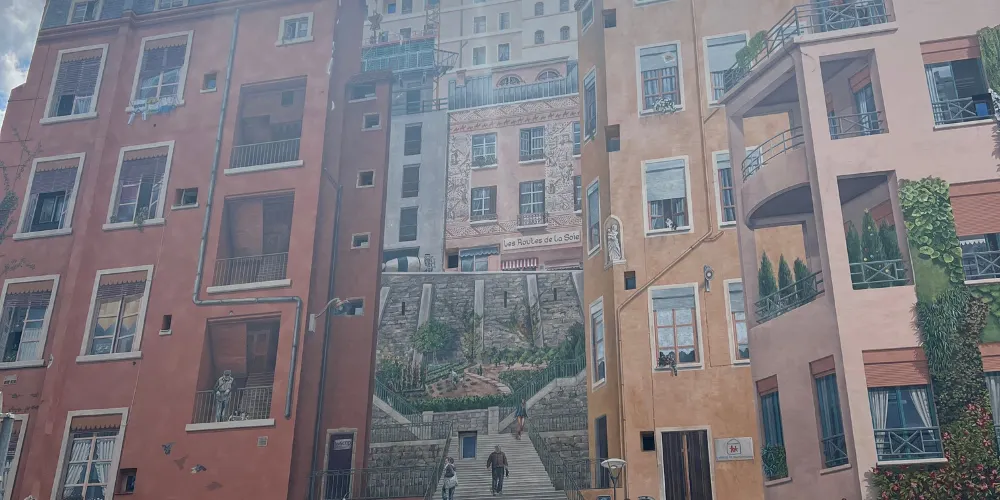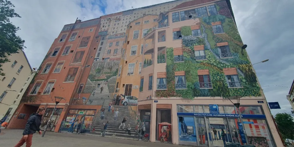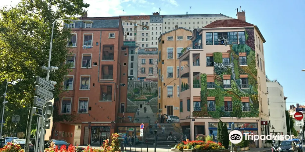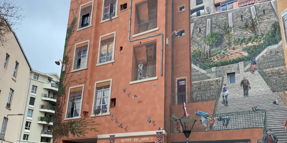 裡昂紅十字街區(Croix Rousse)的絲織工人之牆是一幅繪於一座六層紅磚大樓的外牆面上的城市壁畫,位於兩條小路交匯的X型路口,彷彿城市皮膚上的彩繪。