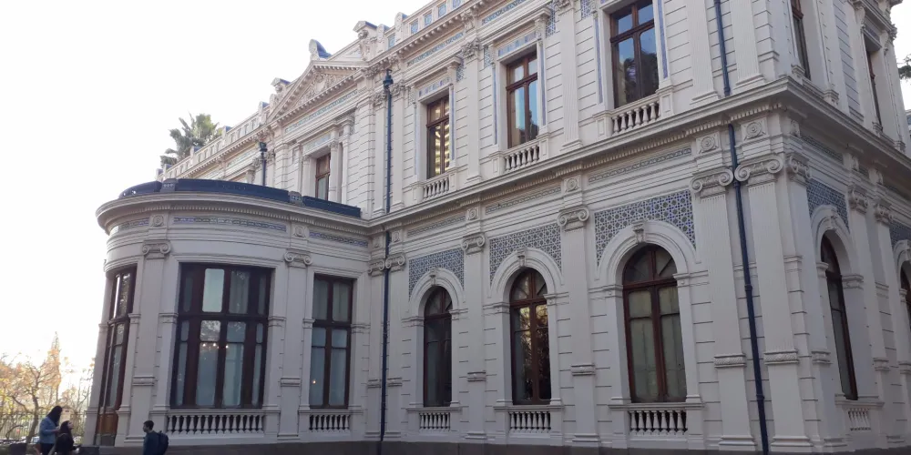 始建初衷為聖地亞哥一居所,即西班牙征服者佩德羅·德·瓦爾蒂維亞的私人住所。殖民時期為歷任總督官邸,自1810年智利獨立至1846年,為總統官邸;1846年以後政府辦公地點以及總統官邸遷至LaMoneda宮,總統府。此後不久,建築失火,然而有幾面牆劫後餘生,仍巍然屹立。1882年被建築師RicardoBrown改建成新古典主義風格的大樓——中央郵局大樓的前身。1908年,為迎接智利獨立百年慶典,建築師RamonFeherman為中央郵局增加了法式新古典主義風格的第三層,並增加了一個穹頂。現該樓用於中央郵局,在郵局二層設有郵政博物館。