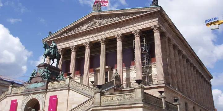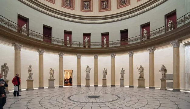 △ 柏林舊博物館於1830年開幕,是博物館島上歷史悠久的博物館。這座博物館承襲了新古典主義的建築風格,正面由18根圓柱並列支撐,內部的主廳堂呈球形,上方巨大的圓形拱頂十分搶眼。舊博物館展出了古希臘及羅馬的藝術珍品,展品內容十分豐富。