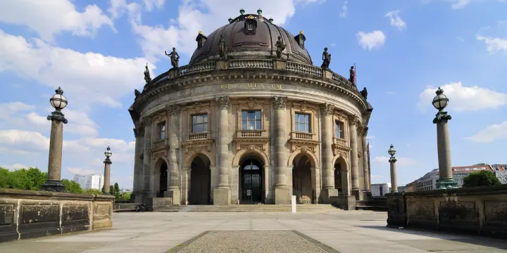 △博得博物館位於博物館島的外側,建於1898年-1904年間,這座巴洛克式建築採取了三角形的排列方式,館內包含了3所獨特的小博物館:德國的拜占庭藝術博物館,集結了拜占庭帝國時期的各種藝術精品;貨幣博物館中展出了50萬件古錢幣展品,雕刻博物館內則收藏了德國首屈一指的中世紀雕刻珍藏品。