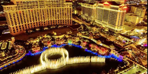 則評價百樂宮噴泉位於拉斯維加斯貝拉吉奧酒店門前,整個噴泉佔地相當大,猶如湖面一般。噴泉的噴射方向和高度全部由電腦程序編排,並與不同的音樂配合。到了夜晚,噴泉會在整點開始表演,配合著噴泉池底數千隻燈光照明,噴出不停變化的水柱造型,堪稱是一場精彩的視覺和聽覺盛宴。